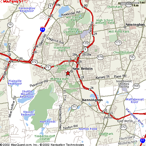 Make a left turn from the exit onto Ellis St., and proceed straight to Arch St. (traffic lights at Cherry St., S. Main St. (RT. 71), Basset St. (school), and Arch St. (no street sign, last time we checked!).